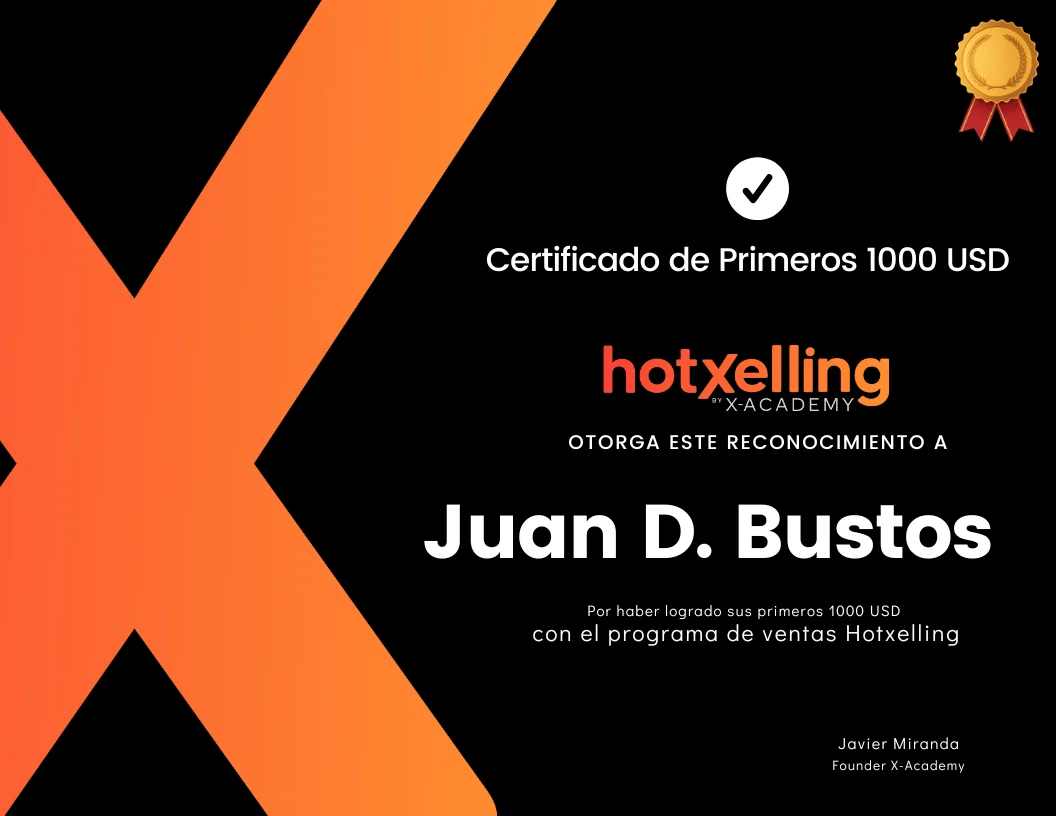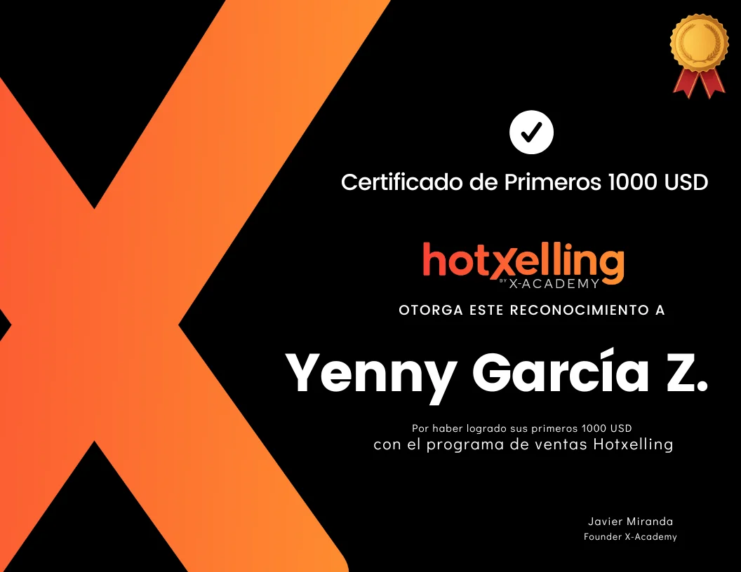 "Tengo mes y medio que empecé y ya he facturado +2.000usd. Desde que estoy en Hotselling estoy vendiendo, y sé que a medida de que vaya aplicando toda la estrategia esto va a seguir creciendo".