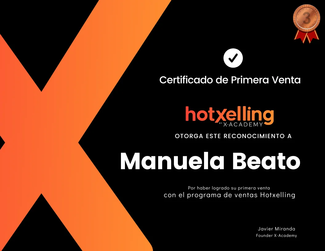 “Estaba agotada de vender con lanzamientos, webinars y desafíos. Con Hotselling encontré una guía completa paso a paso para automatizar la venta de mis productos, en menos de un mes facturé cerca de los $5.000usd y espero seguir avanzando y crear otros productos en automático como este".